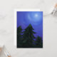 An abstract painting illustration art of a star shining above a fir forest at christmas night