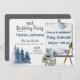 Celebrate a birthday with a fun night out of painting. Art party invitation with with winter scene, paint brush and easel. Change text as preferred for any occasion.