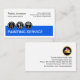 A simple retro design with a blue rectangular layer near the base of the card. This blue piece has three painting tools icon above it with the business name "PAINTING SERVICE" you can change. At the top lies your prestigious name, job title with the contact details in the opposite direction.