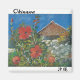 A watercolor painting magnet of hibiscus and a traditional Okinawan House.