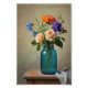 Bring nature indoors with this stunning wall art featuring a vibrant floral arrangement in a blue glass jar. The vertical layout showcases two lively orange blooms and a striking purple flower, all beautifully detailed with delicate petals and green stems. The soft beige background makes the colours pop, while the realistic style with a hint of impressionism captures the freshness of the flowers and the clarity of the glass jar. Perfect for adding a touch of elegance to any room, this piece is a must-have. Grab yours today and brighten up your space!