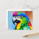 Painting of a parrot with colourful feathers postcard