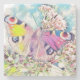 Painting of a pink butterfly on coloured flowers s stone coaster