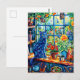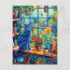 Painting of Cat on Garden House Windowsill Postcard