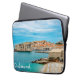 Painting of Dubrovnik fortress walls, beach and turquoise water. Famous Banje Beach with view of the Dubrovnik city walls and old town. Beautiful turquoise water and yellow send