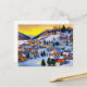 Painting of Village in Snow at Dawn Holiday Postcard