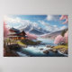 Painting of Wonderful Japanese Sakura with River Poster