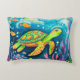 The cushion is small to medium sized. It can be washed. It is well constructed. The material used is pleasant and feels decent quality. It has a very slight plush feel which is good. It is well labelled and its care clearly stated. Theres nothing not to like about it. All in all a good item. The deduction of one star overall is due to long delays in delivery to the UK. It's not clear if this was due to Zazzle or somewhere else in the chain as I did not receive status updates of dispatch or progress. I cannot comment anymore on that other than to say that was our experience but it may not be the same for you. The printing was surprisingly close to what we were expecting. Its an art piece and on material so its hard to assess the precision of printing but it seems close to the original. The soft lines are reproductions of the original. The colour is a fair reflection of the painting. This was printed in the US and it looks like US quality. No issues.