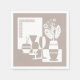 Painting, vases, flowers, wine glasses, glass, vintage, decor, kitchen, retro, patchwork, decor, minimalistic, beige, light, light beige