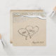 pair of hearts in beach sand with frothy surf for wedding invite.