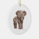A charming pair of elephants is featured on this festive Christmas ornament, illustrated in soft, gentle tones that bring warmth and tenderness to your holiday décor. The two elephants stand close together, their trunks affectionately intertwined, symbolizing love, family, and togetherness. Set against a subtle seasonal backdrop, this ornament adds a heartfelt touch to the tree—perfect for animal lovers, new families, or anyone who cherishes meaningful holiday moments. A sweet keepsake to enjoy year after year.