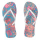 Persian pattern on these flip flops for a classic BoHo look in soft shades of rose pink and turquoise with watercolour style flowers