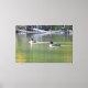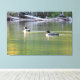 An extra large canvas art print with a pair of loons, an olive green coloured lakeside cottage style feel.