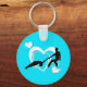 Pairs figure skaters on turquoise background performing the "death spiral". Also includes white heart designs.