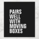 What pairs well with a new home? This wine, of course. Great for a humourous housewarming gift or a gift from a realtor, this funny black and white wine label says "pairs well with moving boxes" but it can be customised to say anything you like. It can also be a different colour. Show your funny and thoughtful side with this collection of "pairs well with..." wine labels!