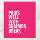 Want to know what this wine pairs well with? Summer break. Or family trips. Anything goes on this hilarious customisable wine label! Great for a funny mum gift or even an end of the school year teacher or principal gift. The funny wording is up to you or you can leave it as-is to read "pairs well with summer break." The magenta background can also be adjusted by clicking "customise."