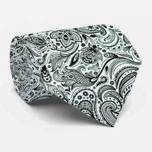 Elegant Black & White Paisley Pattern Tie