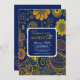 This navy blue background invitation features a paisley pattern and flowers in hues of yellow and orange. Shown as a birthday invitation, it's well-suited for most happy celebrations. (<a href="http://www.freepik.com/free-vector/inspirational-quote-good-things-take-time_1128333.htm">Designed by Freepik</a>). (<a href="https://www.vexels.com/vectors/preview/77682/paisley-pattern-in-orange-and-blue"> Paisley pattern in orange and blue </a> | designed by Vexels). <br/><br/>The card is easy to customise with your wording, font, font colour, paper shape options and choice of six paper types.<br/><br/>Not exactly what you're looking for? All our products can be custom designed to meet your needs at no extra charge.<br/><br/>Simply contact us at askcottonlamb@gmail.com.<br/><br/>Coordinating products available: Just ask us!