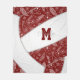 This boho volleyball themed fleece blanket for her features the realistic image of an abstractly oversized volleyball that has maroon and white panels - a continuous doodle pattern of paislies, flowers and feathers in white covers the volleyball's maroon panels - personalise with the athlete's name and monogram, varsity letter or jersey number - by katz_d_zynes