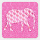 Mixed pattern digital graphic of a richly embellished elephant against an arabesque tiled background - paisley pattern in shades of deep to light fuchsia pink against a pale ice pink background