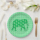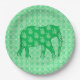 Paisley elephant - jade green and white paper plate
