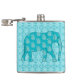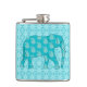 Mixed pattern digital graphic of a richly embellished elephant against an arabesque tiled background - turquoise / peacock blue with a white, lacy, paisley pattern and a turquoise and aqua background