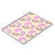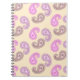 A sweet paisley design with bohemian vibes, that is more organised than the typical paisley pattern. The paisley pattern is in pink, purple and brown against a yellowish cream coloured background.