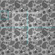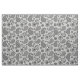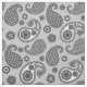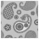 Fabric in an ornate paisley pattern in shades of medium to dark grey, black and white, on a medium silver grey background