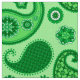 Decorator fabric in an ornate paisley pattern, in shades of emerald green and light to deep jade green, on a light jade green background background