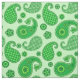 Fabric in an ornate paisley pattern in shades of chartreuse to deep emerald green on a pastel lime green background