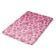 Bathmat in an ornate paisley pattern in peppermint shades of medium to deep fuchsia pink, accented with white, on a pastel pink background