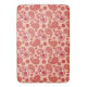 Bathmat in an ornate paisley pattern in shades of medium to deep coral orange, accented with white, on a pastel coral orange background