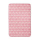 Ornate paisley pattern bath mat in pale and deep coral pink on a soft coral pink background