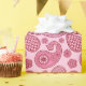 Ornate paisley pattern in shades of light to deep rose pink, accented with burgundy, on a pastel pink background