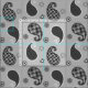 Paisley pattern, silver grey, black and white fabric