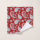 Towel set in an ornate paisley pattern in gradients of silver grey / grey with a faux metallic look, on a deep Christmas red background