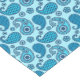 Ornate paisley pattern in shades of light sky blue to deep cobalt blue on a soft ice blue background