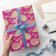 Paisley pattern, Soft Gold on Deep Fuchsia Pink Wrapping Paper