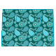 Ornate, lacy, paisley pattern in shades of aqua and seafoam, accented with white, on a deep teal blue background