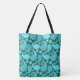 Ornate, lacy, paisley pattern in shades of aqua and seafoam, accented with white, on a deep teal blue background printed bag