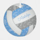 This cute volleyball themed ornament features the realistic image of a volleyball that has light blue, grey and white panels and a delicate doodle pattern of paislies, flowers and feathers in white overlying the blue and grey panels - personalise with her name on the front, year on the back - by katz_d_zynes
