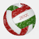 This cute volleyball themed ornament features the realistic image of a volleyball that has red, green and white panels and a delicate doodle pattern of paislies, flowers and feathers in white overlying the red and green panels - personalise with her name on the front, year on the back - by katz_d_zynes