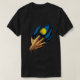 I give wanted to give this a 4 instead of a 5 because these Basic DARK T0shirts run unexpectedly SLIM or Narrow. Which is great if you do not have a potbelly, but I have a paunch. It isn't the shirt's fault that I've got a beer belly. The design and shirt itself is a quality cotton shirt. The color is more of a deep purple, but still a very pretty color. The Basic DARK T-shirts run a bit SLIMMER than the Basic Ts. The neck is a fraction narrower (or seems to be narrower) also. I'm a paunchy middle-aged woman and my neck is 12 inches (31cm) thick and the neckline fell about the same as in the photo of the man, and I had the desire to tug it a bit. So if you're a thick necked man or like loose shirts, be aware these are slimmer shirts. Once I get rid of my lockdown paunch it'll look great. The shirt washed well in cold water with no apparent bleeding. We don't have a dryer, so it hung dry. Did not shrink. Love the colors and the design. The design looks smaller on my shirt than it does on the model on-line. But still, it looks good on the shirt. The printing looks as it does on the model, just the size seems fractionally smaller. Washed garment in cold water, hung dry and design appeared unaffected.