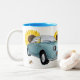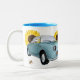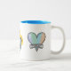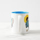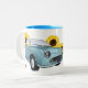 This mug features the Pale Aqua Figaro. The story that this Figaro color represents “summer” is reflected in the design, with sunflowers in the background.