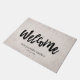 Rustic welcome mat printed to look like pale birch bark, with Welcome written in black brush script. Personalise with your family name and the year your family was established.