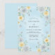 This design features a soft watercolor palette of sky blue, buttery yellow, and muted slate tones. Delicate clusters of blooming roses and lush eucalyptus sprigs adorn the edges for a serene aesthetic. The airy botanical background creates a romantic atmosphere perfect for a lighthearted spring seasonal event. Elegant greenery and soft-petaled florals offer a sophisticated and timeless look.