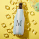 Pale Blue & Antique White Stripes Monogrammed Bottle Cooler