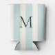 Pale Blue & Antique White Stripes Monogrammed Can Cooler