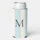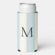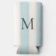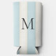 Pale Blue & Antique White Stripes Monogrammed Seltzer Can Cooler