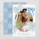 This coquette graduation announcement features your photo surrounded by a hand-drawn pale blue bows. The reverse side features a blue background with a bow pattern. Personalize it for your needs. You can find matching products at my store.